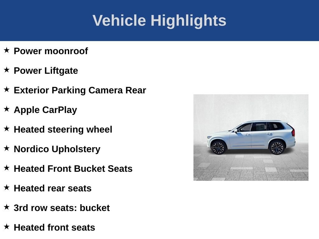 *BACKUP CAMERA*, *USB/HANDS FREE/BLUETOOTH, *SUNROOF/MOONROOF*, *LEATHER*, XC90 B5 Core, 4D Sport Utility, 2.0L I4 Turbocharged DOHC 16V LEV3-ULEV70, Automatic with Geartronic, AWD, Crystal White Pearl, Cardamom Premium Synthetic, 3rd row seats: bucket, Alloy wheels, Apple CarPlay, Exterior Parking Camera Rear, Front Bucket Seats, Heated Front Bucket Seats, Heated front seats, Heated rear seats, Heated steering wheel, Memory seat, Navigation System, Nordico Upholstery, Power driver seat, Power Liftgate, Power moonroof, Power steering, Remote keyless entry, Speed-sensing steering. XC90 B5 Core, 4D Sport Utility, 2.0L I4 Turbocharged DOHC 16V LEV3-ULEV70, Automatic with Geartronic, AWD, Crystal White Pearl, Cardamom Premium Synthetic, 3rd row seats: bucket, Alloy wheels, Apple CarPlay, Exterior Parking Camera Rear, Front Bucket Seats, Heated Front Bucket Seats, Heated front seats, Heated rear seats, Heated steering wheel, Memory seat, Navigation System, Nordico Upholstery, Power driver seat, Power Liftgate, Power moonroof, Power steering, Remote keyless entry, Speed-sensing steering, 10 Speakers, 4-Wheel Disc Brakes, ABS brakes, Air Conditioning, AM/FM radio: SiriusXM, Anti-whiplash front head restraints, Auto High-beam Headlights, Auto-dimming door mirrors, Auto-dimming Rear-View mirror, Automatic temperature control, Brake assist, Bumpers: body-color, Delay-off headlights, Driver door bin, Driver vanity mirror, Dual front impact airbags, Dual front side impact airbags, Electronic Stability Control, Emergency communication system: Volvo Cars App w/4 Year Subscription, Four wheel independent suspension, Front anti-roll bar, Front Center Armrest w/Storage, Front dual zone A/C, Front reading lights, Fully automatic headlights, Garage door transmitter: HomeLink, Genuine wood dashboard insert, Genuine wood door panel insert, Headlight cleaning, Heated door mirrors, Illuminated entry, Knee airbag, Low tire pressure warning, Occupant sensing airbag, Outside temperature display, Overhead airbag, Panic alarm, Passenger door bin, Passenger vanity mirror, Power door mirrors, Power passenger seat, Power windows, Radio data system, Radio: High Performance Audio System, Rear air conditioning, Rear anti-roll bar, Rear dual zone A/C, Rear fog lights, Rear reading lights, Rear seat center armrest, Rear window defroster, Rear window wiper, Security system, Speed control, Split folding rear seat, Spoiler, Steering wheel mounted audio controls, Tachometer, Telescoping steering wheel, Traction control, Trip computer, Turn signal indicator mirrors, Variably intermittent wipers, Wheels: 20" 5-Multi Spoke Black Diamond Cut Alloy, and Wheels: 21" 5-Multi Spoke Black Diamond Cut Alloy.
