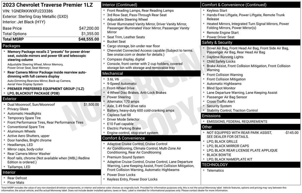 Used 2023 ChevroletTraverse Premier SUV