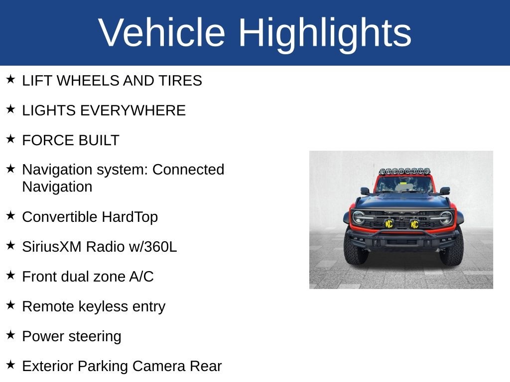 I want to start off by saying I have been waiting for the release for years and had very high expectations because I grew up in a bronco family. When I bought mine I was not disappointed. It was a beautiful blend of nostalgia and new features married to create a new vehicle in the small suv class that is different then all the others. There isn't much I don't like about the design. I have the big bend with a couple add on options. I'm very happy!… - 5.0