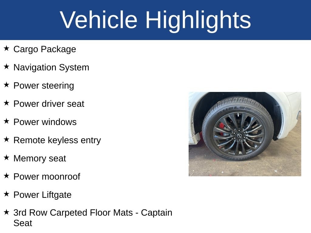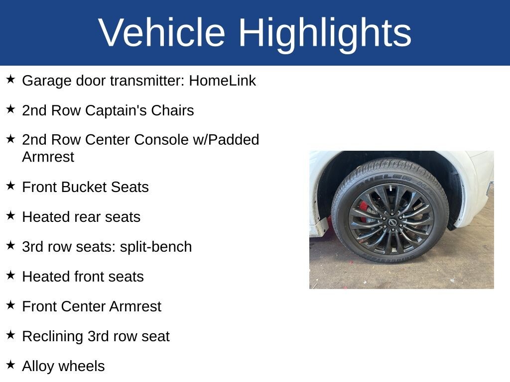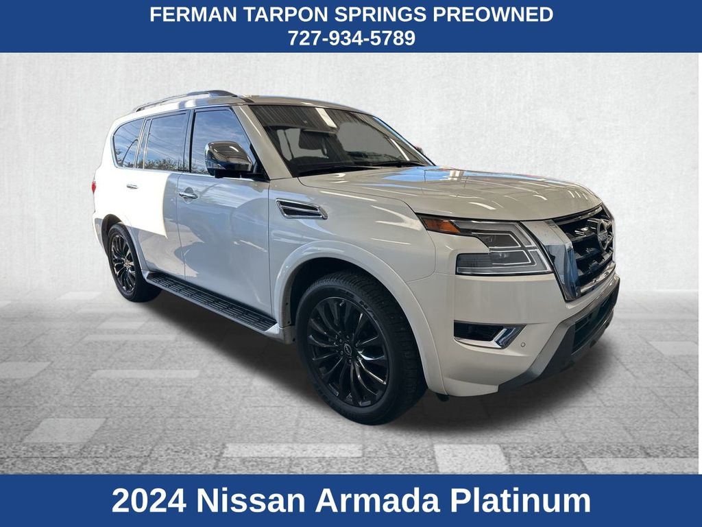 Armada Platinum, 4D Sport Utility, 5.6L V8 DOHC 32V LEV3-ULEV125 400hp, 7-Speed Automatic, RWD, Aspen White Tricoat, Brown Leather, 2nd Row Captain's Chairs, 2nd Row Center Console w/Padded Armrest, 3rd Row Carpeted Floor Mats - Captain Seat, 3rd row seats: split-bench, Alloy wheels, Cargo Package, Front Bucket Seats, Front Center Armrest, Garage door transmitter: HomeLink, Heated front seats, Heated rear seats, Memory seat, Navigation System, Power driver seat, Power Liftgate, Power moonroof, Power steering, Power windows, Reclining 3rd row seat, Remote keyless entry.